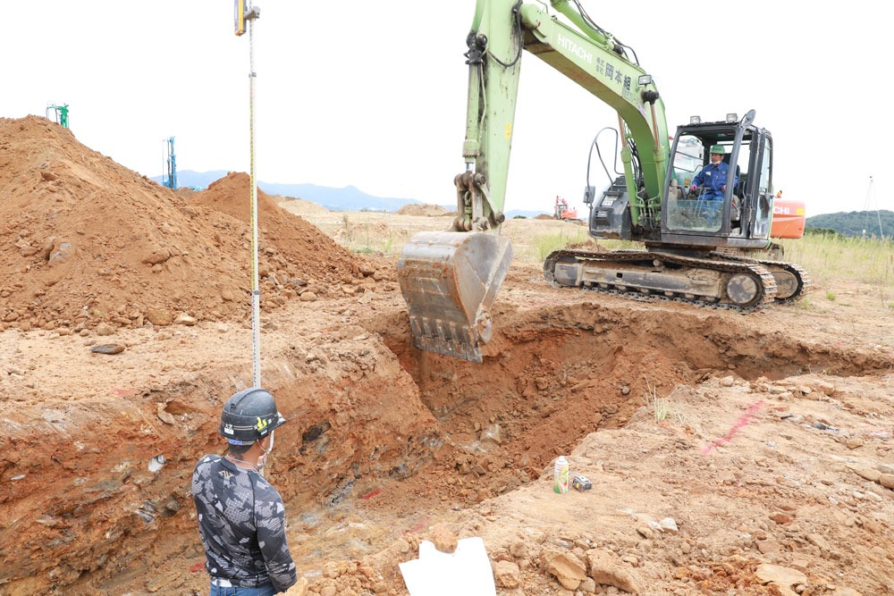 作業内容としては根切りという工程からスタートし、地盤を削って基盤を作っていき、その後排水作業で根切りによる地下水の排水を行います。根切りと排水の作業が終われば埋め戻しという工程に移ります。掘った土を元に戻して床付けの作業を行えるようにしていきます。